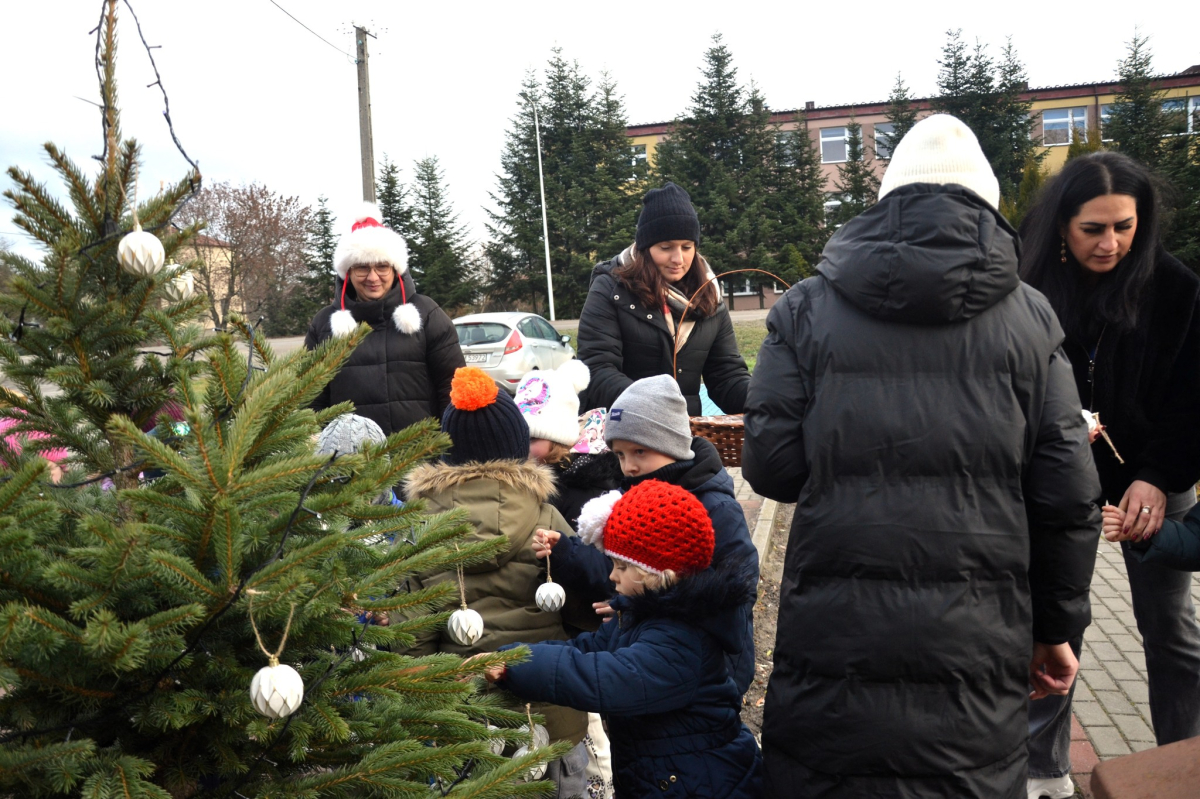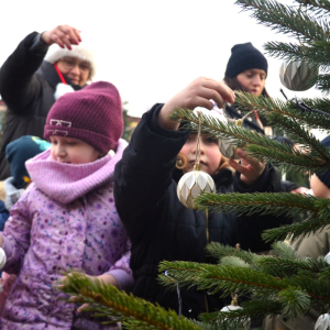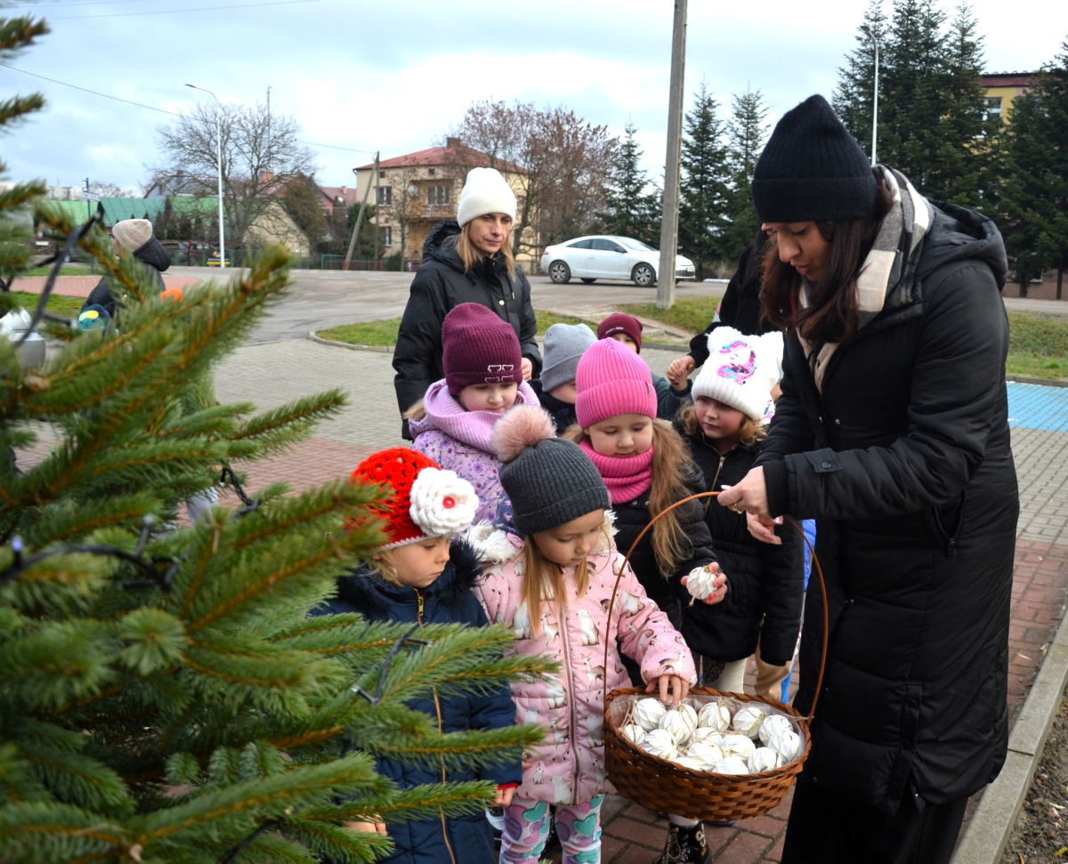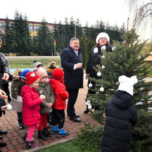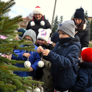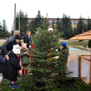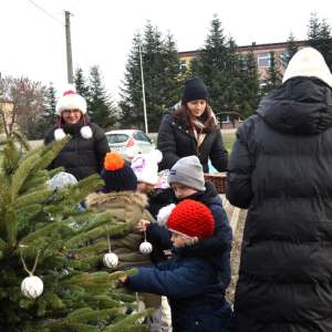 Choinki tradycyjnie ubierały Przedszkolaki z Przedszkola Samorządowego w Lubyczy Królewskiej, Burmistrz Lubyczy Królewskiej Pan Marek Łuszczyński, Dyrektor Gminnej Biblioteki Publicznej Alicja Żmuda oraz pracownicy naszej Biblioteki.
