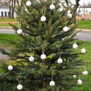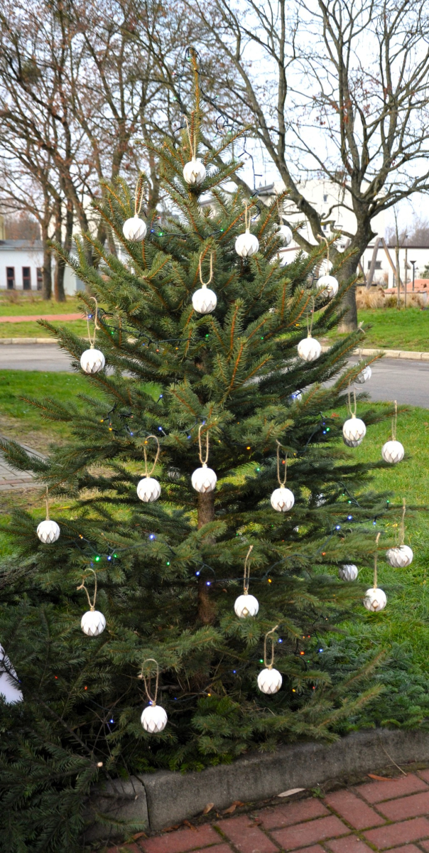 Dziś, jak co roku, przy naszej Bibliotece zostały ubrane choinki,